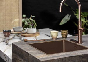 Quooker heeft de 3 elementen heel mooi gecombineerd in de kokend-water-kraan. Je hebt direct kokend water voor je thee, aardappels en pasta. Daarnaast is de Quooker kraan verkrijgbaar in prachtige kleuren én je bespaart energie en water. In de Quooker bespaar check (quooker.nl/bespaarcheck) zie je binnen een minuut wat je nu verbruikt en wat het gaat schelen als je een Quooker in je nieuwe keuken plaatst.