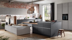 Design keuken met kookeiland, Nobilia Artis grijze keuken met hout