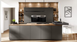Foto: Design keuken met kookeiland – Nobilia Artis grijze keuken met hout