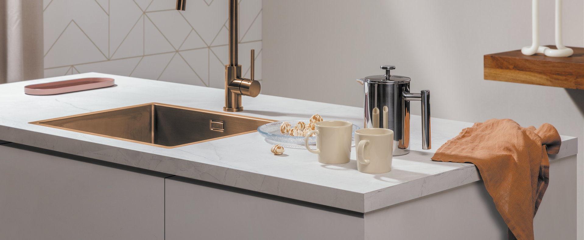 De speciale nanocoating op het Fenix keukenblad zorgt ervoor dat je geen vingerafdrukken ziet op het blad. Een Fenix Greengridz werkblad is waterbestendig en hygiënisch.