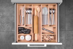 Een keukencoach van I-KOOK weet precies hoe je een overzichtelijke en efficiënte lade indeling ontwerpt voor jouw droomkeuken!