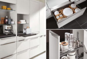 - Hoge keukenkasten en kastenwand voor inbouwapparatuur;