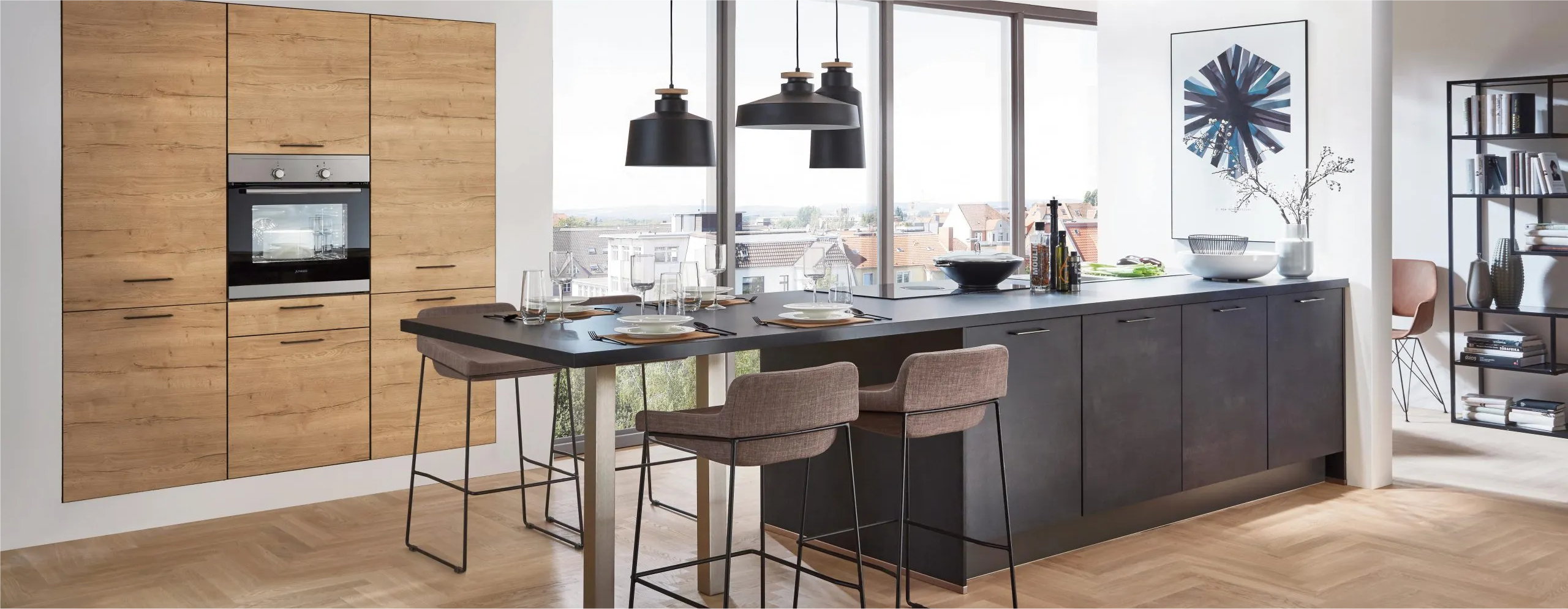 In de moderne keuken schitteren de strakke lijnen en de minimalistische vormgeving. De rechte hoeken van het keukenblok, de kasten en het aanrechtblad versterken elkaar. Sierlijke lijstjes en frutsels zijn overbodig. Het krachtige luxe keukendesign is tot in de puntjes uitgedacht en uitgewerkt.