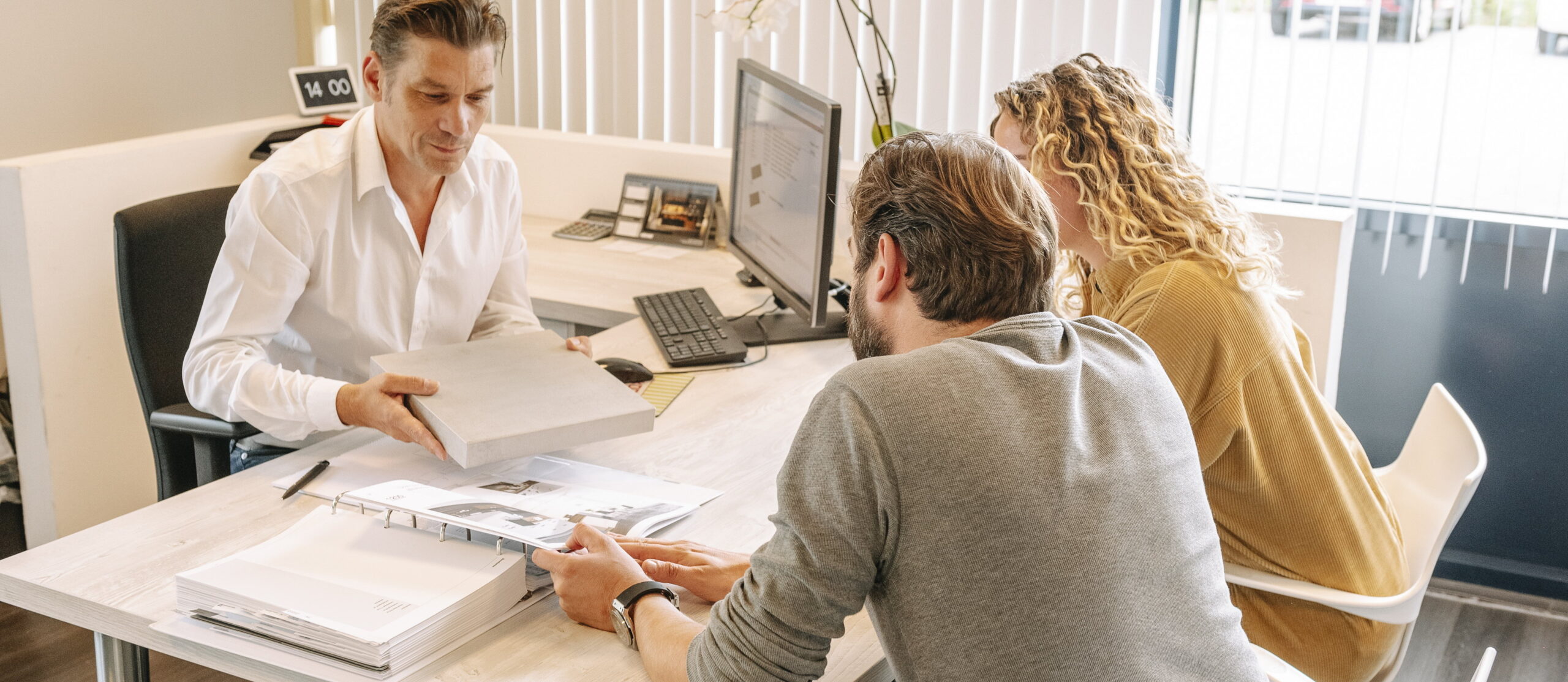 Een keukencoach van I-KOOK bespreekt met jou wat je mooi vindt en wat het best in de keukenruimte past.