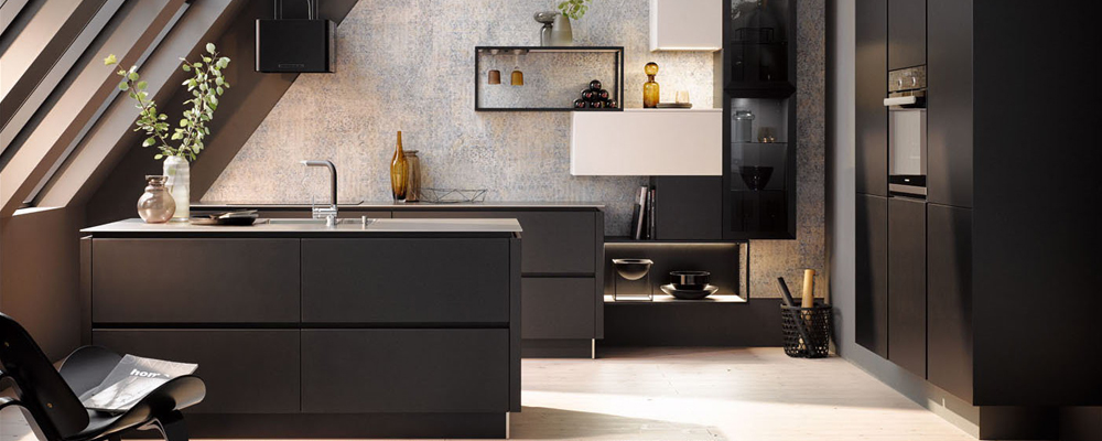In de keuken laten meerdere tinten zwart zich van stoer tot stijlvol combineren. Dit kan heel spontaan door toepassing van verschillende materialen en structuren . Hout, kunststof, glas en steen kunnen in hun afwerking variëren van mat of zijdeglas tot hoogglans.