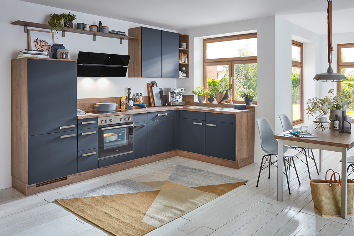 Deze keuken is van topkwaliteit en straalt warmte uit. Door matte donkerblauwe fronten en donker hout te combineren, krijg je een zeer authentieke keuken. Door de vele frontmogelijkheden creëer je elke gewenste sfeer!
