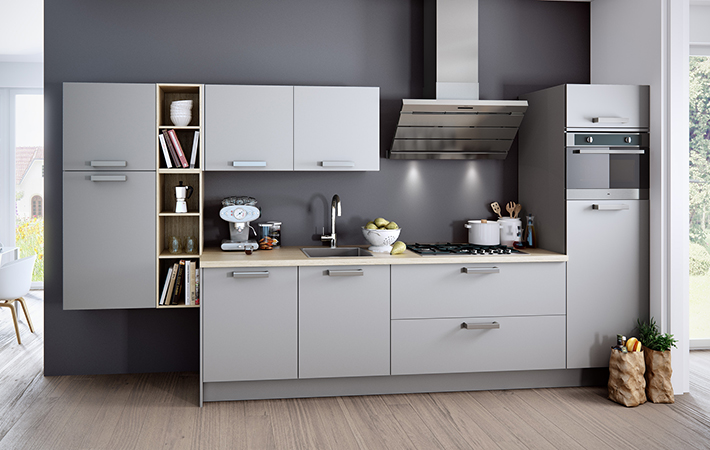 Samen met je keukencoach maak je je keuken compleet met bijvoorbeeld een kraan en/of verlichting. We leveren deze keuken in iedere gewenste maatvoering. Verder kan je kiezen uit een groot assortiment inbouwapparatuur en werkbladen.
