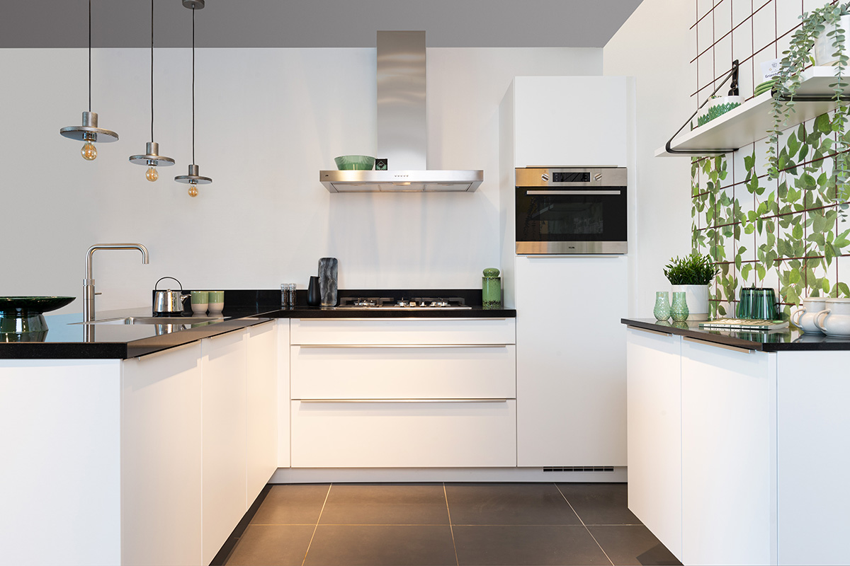 Samen met je keukencoach maak je je keuken compleet met bijvoorbeeld een kraan en/of verlichting. We leveren deze keuken in iedere gewenste maatvoering. Verder kan je kiezen uit een groot assortiment inbouwapparatuur en werkbladen.