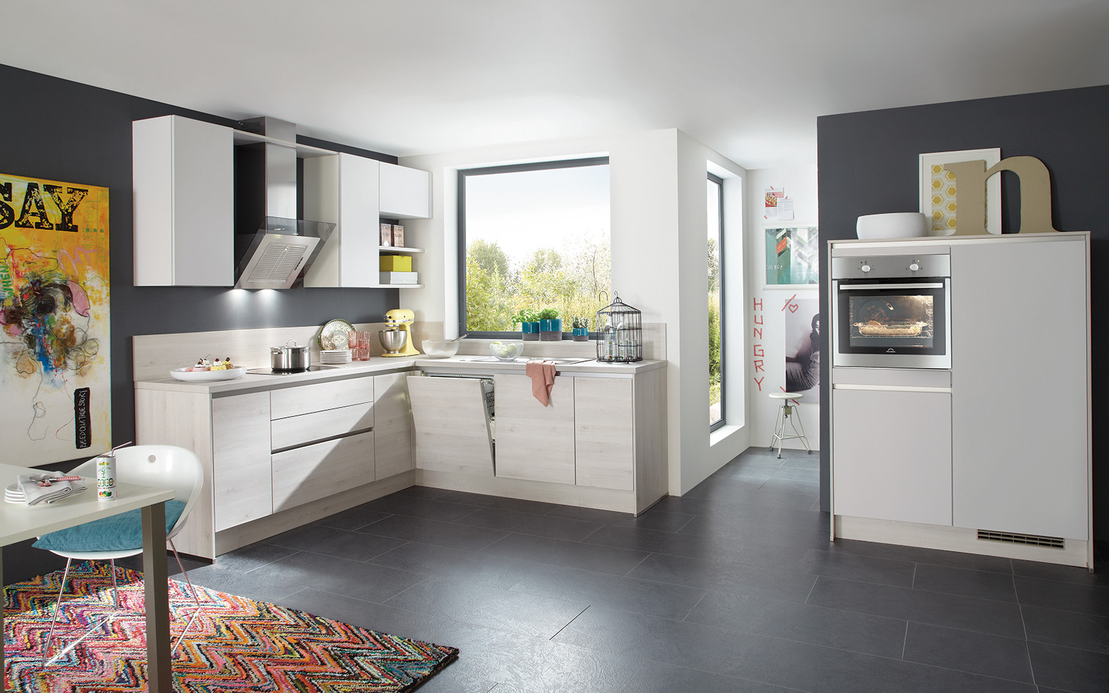 De greeploze keuken Rialto is uitgevoerd met prachtige fronten in een lichte houttint. De ruime hoekkeuken is onder andere voorzien van een praktische brede ladekast onder het kookgedeelte. Het apart geplaatste halfhoge kastenblok biedt ruimte aan de oven en de koelkast.