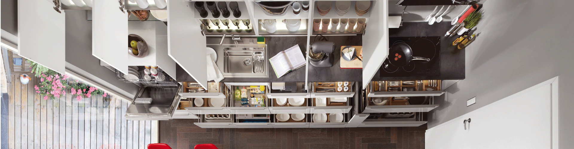Laden zijn een goede optie voor opbergruimtes, er past meer in omdat ze efficiënter omgaan met verticale ruimte dan gewone keuken kastjes.