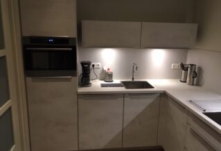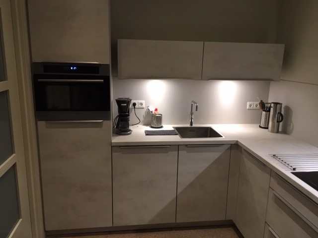 Uiteindelijke heeft I-KOOK ons geholpen van a tot z. De oude keuken is weggehaald en het plafond eruit. Daarna is alles weer aangepast, gestukt en opgebouwd en hebben we een nieuwe meterkast gekregen die voldoet aan de eisen van de nieuwe keuken.