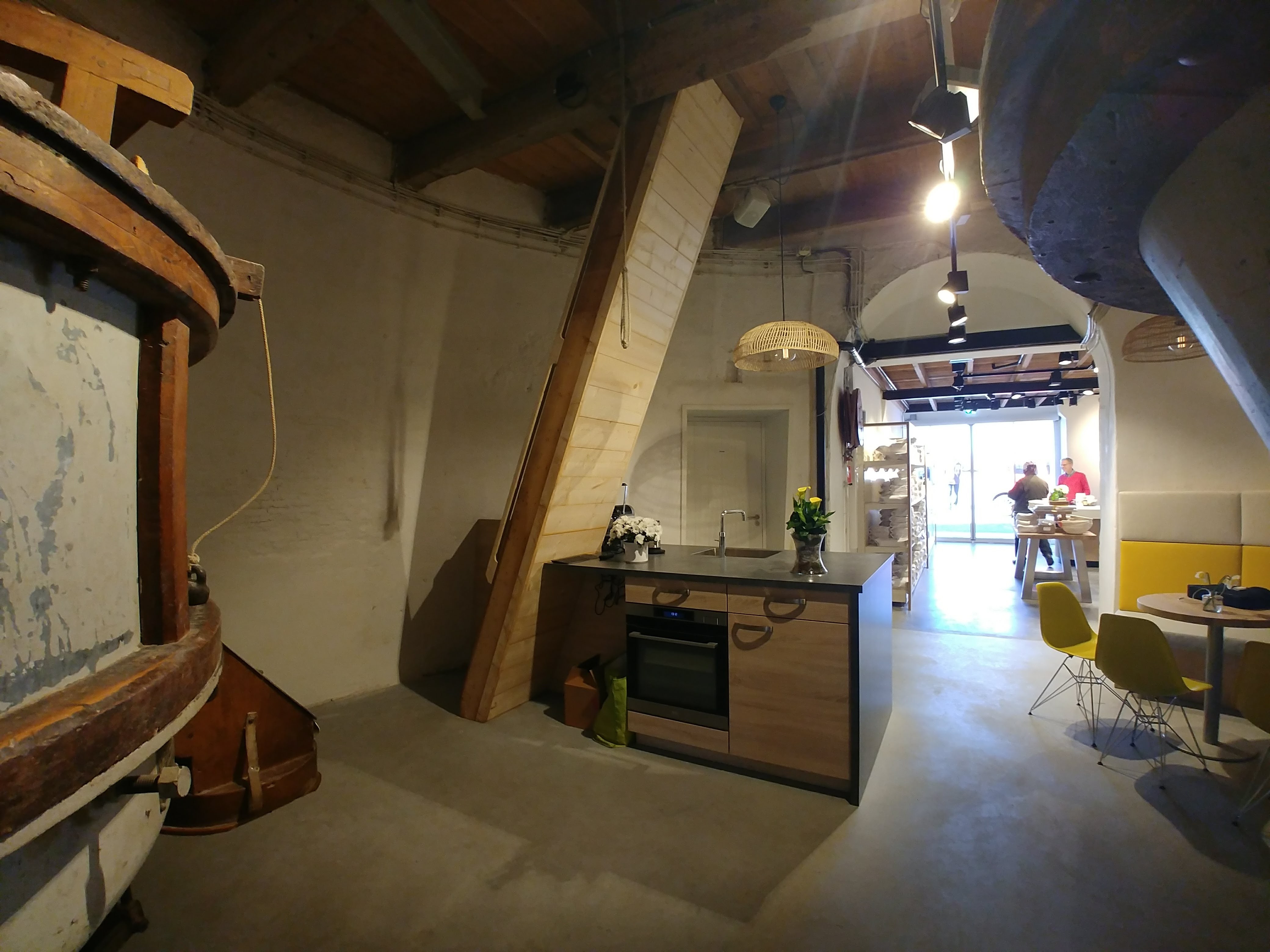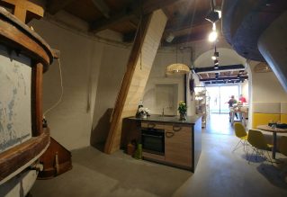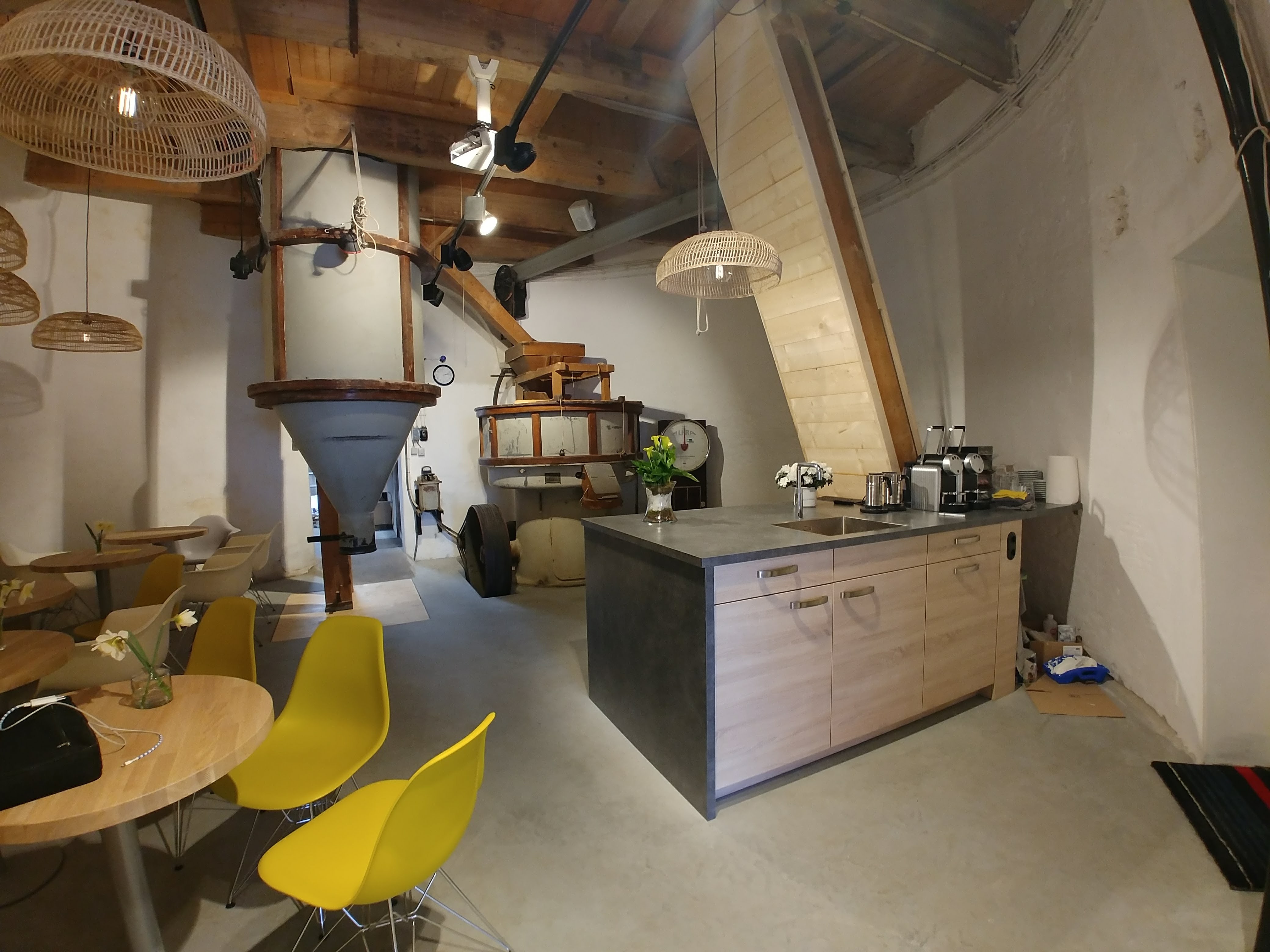 Wij zochten een keuken voor de ontvangst en koffieruimte voor de bezoekers. In deze ruimte komen de bezoekers samen en daarna krijgen ze uitleg over de molen die nog echt in werking is. Omdat een molen natuurlijk rond hadden we een paar uitdagingen waar André ons heel goed mee heeft geholpen.