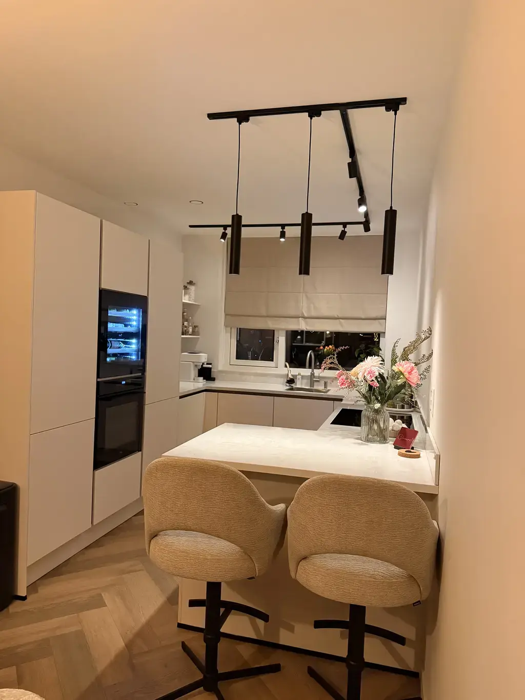Inmiddels zijn we al een paar maandjes verder, maar nog steeds ontzettend blij met onze keuken! En dit wilden we graag nog even laten weten! Eind augustus 2025 is onze keuken geplaatst door Ricardo, dit is erg netjes gedaan en omdat onze spatrand en vensterbank (zoals vooraf besproken) op maat gemaakt moest worden na opmeten na plaatsing van de keuken kwam in oktober ook dat binnen en is Ricardo nogmaals langsgekomen om het af te maken. Wij zijn erg goed geholpen door Lars bij I-KOOK, fijne gesprekken en ik was soms nogal kieskeurig, maar dat maakte hem niks uit en had alle geduld; nogmaals de kleuren bekijken, weer samples mee naar Zevenhuizen om bij Dekker te bekijken met het gewenste blad, even bij daglicht bekijken, een extra plank en ga zo maar door. De barkrukken komen elders vandaan en daar moesten we even op wachten, maar net voor de kerst was het plaatje eindelijk compleet. En daar genieten we van! Dank Lars voor je hulp! Inmiddels is mijn nicht met haar vriend ook bij Lars geweest en ook zij zijn geslaagd.