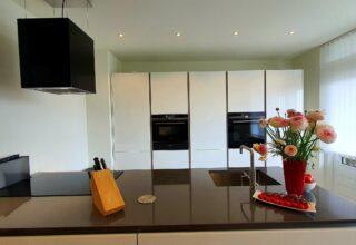 We hebben vorig jaar onze keuken een complete make-over laten geven en we kunnen met volle overtuiging zeggen dat het de beste beslissing is geweest sinds wij hier wonen! Kijkend naar het ontwerp: onze keuken is zorgvuldig ontworpen om maximale efficiëntie en gebruiksgemak te bieden. Elk aspect van de indeling is doordacht, met voldoende werkruimte, slimme opbergoplossingen en handige details die het koken een waar genot maken. We kunnen gemakkelijk de ingrediënten sorteren en ons keukengerei netjes opbergen, waardoor we tijdens het koken veel meer georganiseerd zijn. Ikzelf ben vooral dol op het aanrechtblad van hoogwaardig graniet, dat niet alleen een luxueuze uitstraling heeft, maar ook heel gemakkelijk schoon te maken is. Wat betreft de apparatuur in onze nieuwe keuken, kunnen we alleen maar zeggen: wow!