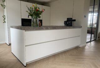 Wat een fantastisch eindresultaat van jullie keuken, het is zeker een mooi geheel geworden! De witte fronten in combinatie met het stenen blad is een prachtige combinatie. De zwarte kraan en spoelbak, samen met de zwarte keukenapparatuur maakt het helemaal af! Bedankt voor het vertrouwen in I-KOOK Veendam en veel geluk in jullie nieuwe keuken!