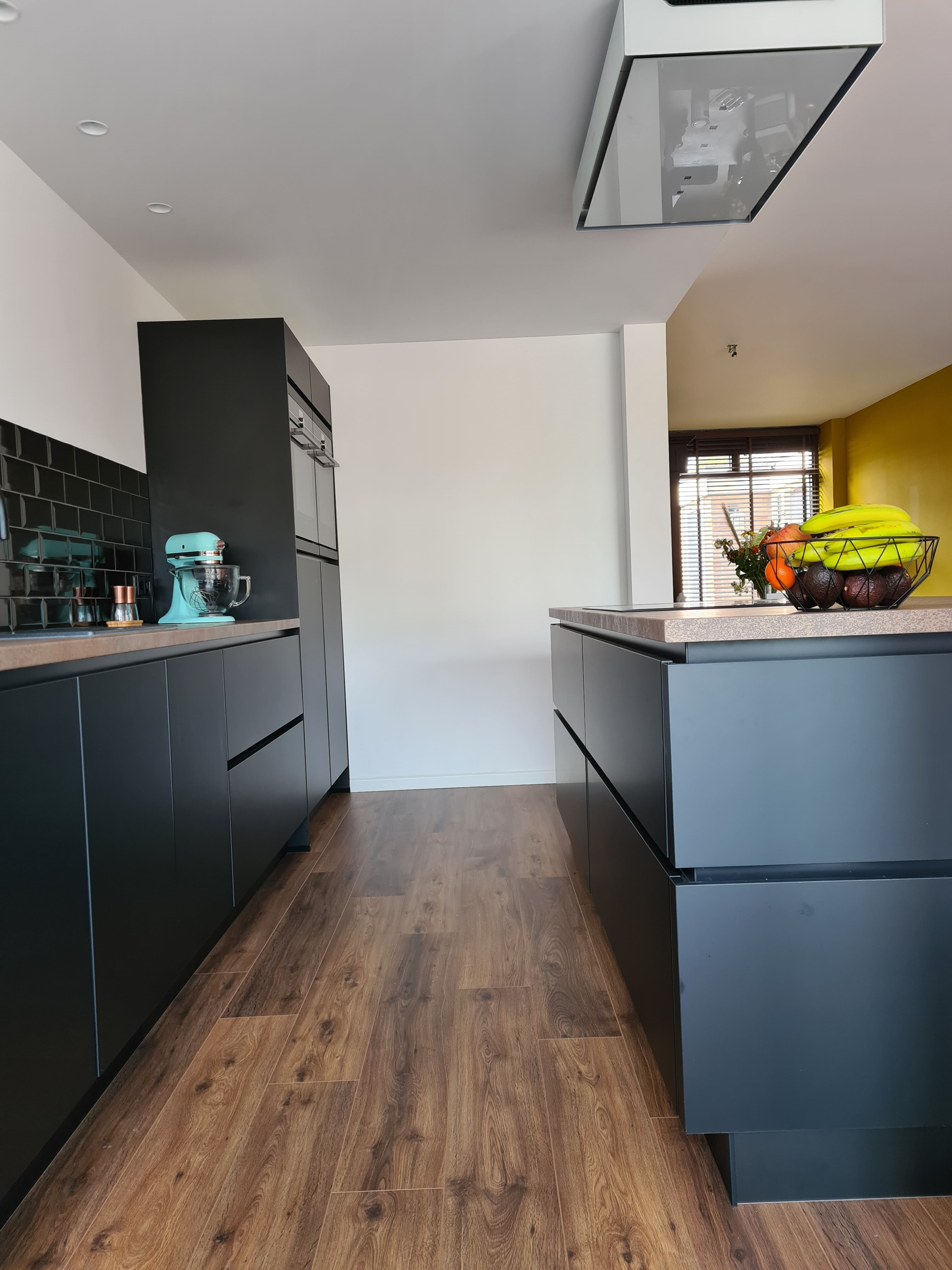 Het is een prachtige eilandkeuken geworden! De interessante kleurencombinatie maakt het een speelse keuken. Hier kunnen jullie met veel mensen van genieten!