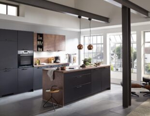 Bij I-KOOK heb je een ruime keuze aan materialen en apparatuur van topmerken. Je kunt op basis van jouw budget zo ver gaan als je wilt. Standaard wordt de Duitse keukens al van hoogwaardige materialen gemaakt. De zijpanelen van keukenkasten worden bijvoorbeeld in kleur geleverd en voorzien van een coating van melaminehars. Extra wandjes die ruimte innemen zijn daardoor niet nodig. Voor een moderne keuken met kookeiland heb je ook een ruime keuze aan werkbladmaterialen. Populair zijn bijvoorbeeld de kunststof werkbladen die we standaard voorzien van praktische naadloze hoekverbindingen.