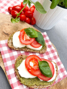 Verlang jij ook zo naar een heerlijke vakantie of een sprankeltje zon? We moeten nog even wachten, maar dit broodje helpt je alvast de goede kant op. De verrukkelijke combinatie van mozzarella, tomaat, basilicum en pesto zijn de ideale combinatie om de zomerse vibe in huis te halen! Het broodje caprese is supersnel gemaakt en gezond. Tip: wil je een nog gezondere keuze maken? Kies dan voor de lightversie mozzarella! Buon appetito!