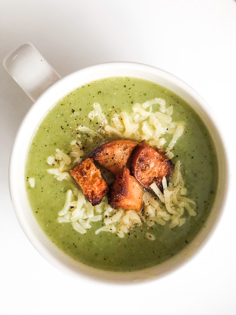 Een kom soep is dé manier om extra groente aan je maaltijden toe te voegen. Voeg wat zelfgekozen kruiden en groenten toe en top het gerecht af met eigengemaakte croutons en geraspte kaas. In een half uur heb je dit heerlijke romige courgettesoep recept op tafel staan. Eet smakelijk!