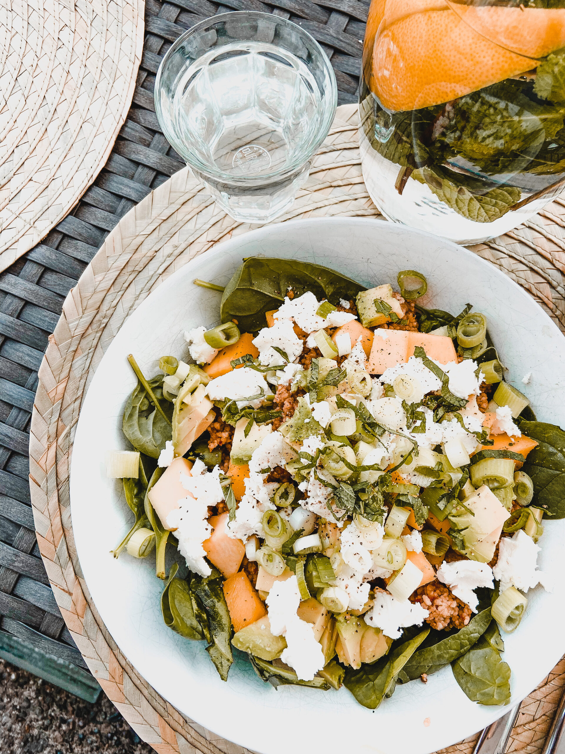 - Top af met de bosui, wat extra feta en zout en peper naar smaak