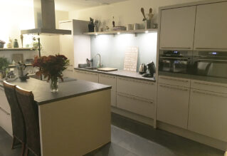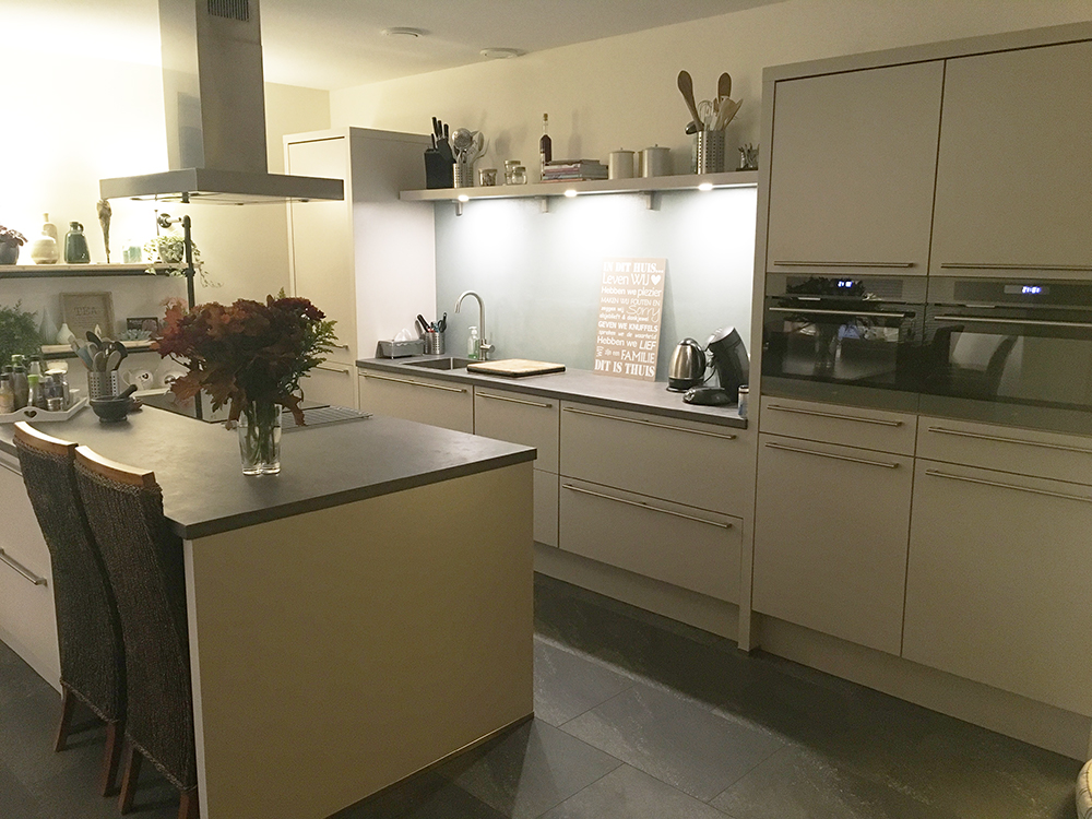 Tijdens een prettig bezoek aan de winkel, waarbij een meedenkende Sjoerd Vervloet ons zeer goede adviezen gegeven heeft, de keuken besteld. Deze werd een week eerder dan gepland geleverd, geweldig want anders hadden wij de verhuizing en keuken levering op dezelfde dag gehad.