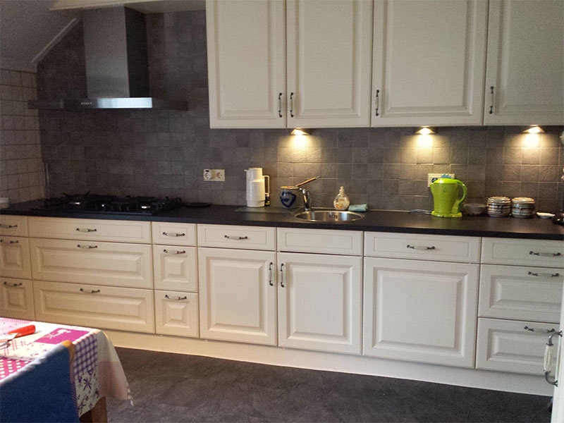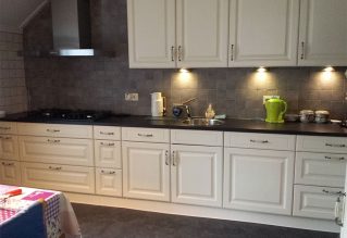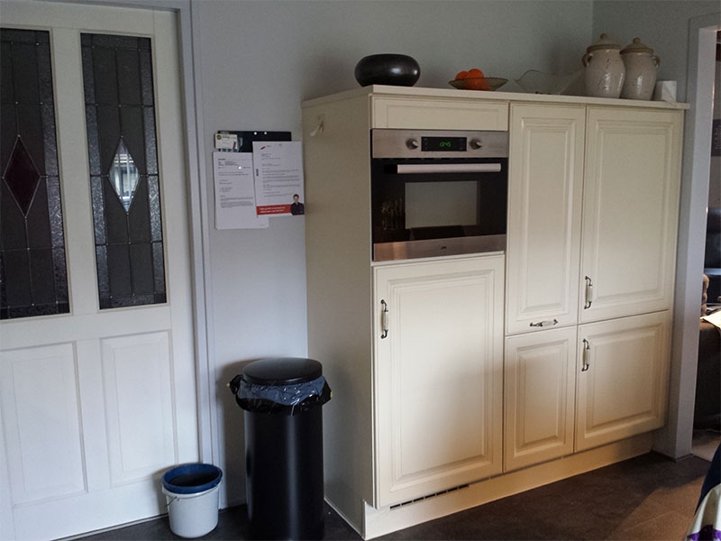 Ik ben zo blij met mijn nieuwe keuken. De grote laden zijn fantastisch in gebruik, zeker ook de besteklade. Heerlijk veel aanrechtruimte en voldoende kastruimte. Het aparte gedeelte is bestemd voor de koelkast en die fantastische apothekerskast. Echt ideaal voor al die kleine keukenrommeltjes.