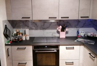 Bedankt voor jullie mooie review, het eindresultaat is prachtig! Fijn dat jullie zo tevreden zijn met de keuken en de service. De keuze voor de marmerlook wand komt mooi tot zijn recht en maakt er een mooi geheel van. Ik wens jullie nog veel plezier met jullie nieuwe keuken, ik denk dat dat zeker wel gaat lukken...?