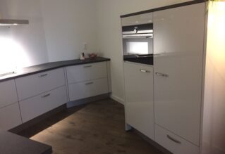 Door de gekke hoeken heeft hij ontzettend veel werk gehad met de werkbladen, maar tot op de millimeter heeft hij dit gemonteerd. Hij is onlangs nog een deur komen vervangen en heeft toen uit eigen initiatief alle deuren en lades nagelopen en bijgesteld. Waar vind je zoiets nog!