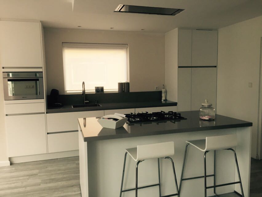 Omdat we ons hele huis wit- en taupekleuren hebben moest ook de keuken de perfecte witte kleur hebben. Er ontstond over en weer een beetje ruis op de lijn doordat de combinatie van deurtjes/lades en wangen in de gewone witte kleur niet optimaal was. Uiteindelijk was Alpine Wit de witte kleur in de combinatie van deurtjes/lades en wangen de perfecte match voor ons huis.