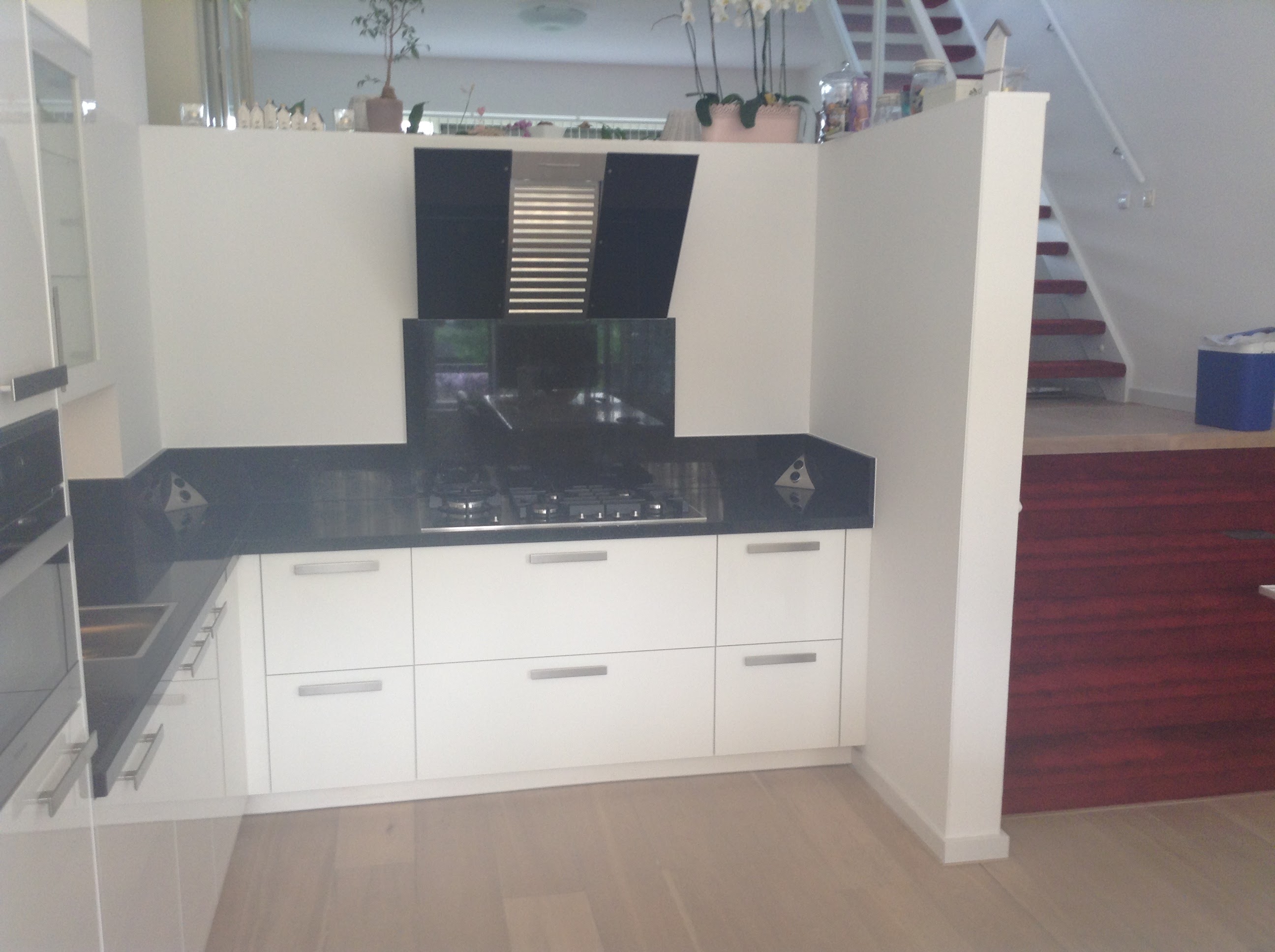 In de wat vreemde indeling van ons huis, splitlevel, is toch een praktisch zeer uitgebreid ontwerp van John Blad van I-KOOK wat tot een prachtig resultaat heeft geleid.