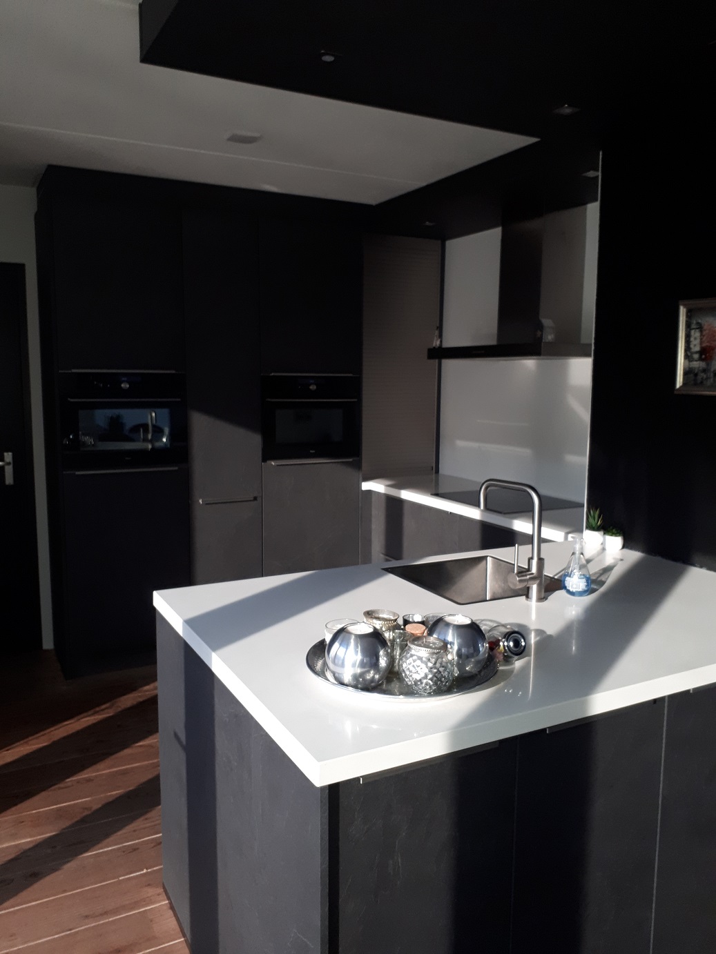 Op een zeer professionele, eerlijke en prettige wijze heeft de heer H. Smit in nauw overleg met ons een fantastisch ontwerp gemaakt van onze nieuwe keuken. Middels een aantal 3D foto’s kregen we een duidelijk beeld van de opstelling in de beschikbare ruimte. Vervolgens is door I-KOOK de volledige installatie voorbereid en heeft de heer J. Dekker op een zeer vakkundige wijze de keuken binnen een week volledig geïnstalleerd. Kortom wij zijn uiterst tevreden over het gehele traject en genieten nu iedere dag van onze droomkeuken!