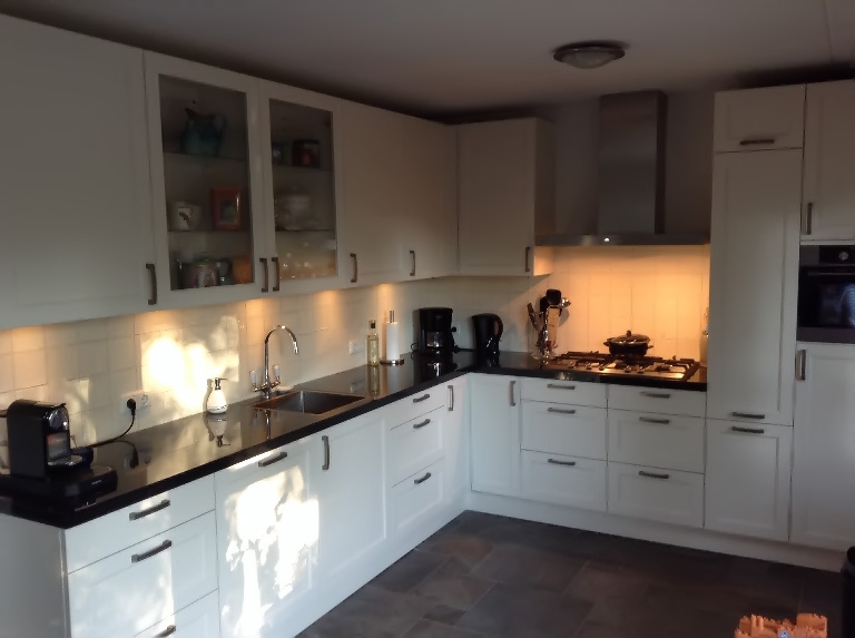 In de showroom super geholpen door Erik om een tekening van onze nieuwe keuken te maken. Niks geen opdringerig gedoe. Bij elke keer dat we nog vragen hadden, was geen moeite te veel om dit voor ons na te kijken en/of op te zoeken. De aflevering van de keuken was op de afgesproken datum. Alles werd keurig en met zorg in de garage gestapeld.Op maandag is Jan Dekker begonnen met het uithalen van de keuken en om 5 uur stonden de onderkastjes reeds op hun plaats. Hij is een man van op tijd zijn en doorwerken en niet rusten voor het precies past. Echt vakmanschap. Hij weet wat hij doet. Complimenten. Ook het tegelwerk waarvan hij vond dat het niet zijn ding was, (handgebakken tegeltjes en niet een recht), zitten er perfect in. Kortom goed werk mannen. Een aanrader om hier een keuken te kopen.