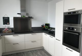 Drie keer is scheepsrecht. Dit gold ook voor de keuken die we bij I-Kook Sittard gekocht hebben. Door omstandigheden kon de koop van 2 voorgaande keukens die we hadden laten ontwerpen niet doorgaan. Dit weerhield Wil er niet van een derde keer te komen inmeten, spullen allemaal mee te nemen en met ons in ons nieuwe huis te overleggen hoe de nieuwe keuken eruit zou komen te zien. Jullie krijgen een dikke tien voor het advies en de montage door Marc, wat een bevlogenheid en wat een hart voor de zaak heeft hij! Een klein punt van discussie was nog even of we wel of geen lade onder de oven besteld hadden of niet, maar dit werd snel opgelost door een goede vervangende kast te leveren. Het is prachtig geworden.