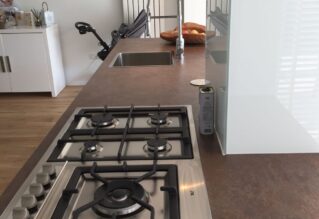 We hebben een nieuwe aanbouw aan ons huis gerealiseerd daarom hebben we besloten er ook een nieuwe keuken in te zetten. Nadat we een keukenstudio bezocht hadden zijn we bij Roger van I-KOOK Sittard beland. Hij heeft ons super geholpen. Is twee keer bij ons geweest om te overleggen en in te meten. De keuken was nogal lastig omdat er middenin een pilaar staat waar het kookeiland omheen moet geplaatst worden. Door een klein foutje onzerzijds was de pilaar iets te groot zodat een kast niet paste. Het montageteam heeft dit toch op een goede wijze weten te monteren door iets van het stucwerk van de pilaar af te halen. Het lichtgroene glas dat we als passe-partout om de hoge kasten hebben laten aanbrengen geeft de keuken een heel aparte sfeer. Een apparaat was door het transport beschadigd. Meteen werd een nieuw apparaat besteld en werd het beschadigde apparaat vervangen.