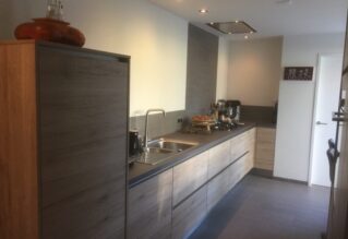 Omdat we, in tegenstelling tot het advies dat we van de keukencoach van I-Kook gekregen hadden, vooraf de achterwandtegels bij het kookgedeelte al geplaatst hadden, stond de ladekast scheef t.o.v. deze tegels. De monteur zag het meteen toen hij de keuken kwam monteren. Samen met de tegelzetter is besloten de tegels nieuw te zetten nadat de keuken geplaatst was. I-Kook heeft dit, ook financieel, allemaal met de tegelzetter geregeld. Nu staat er een prachtige keuken waar we ontzettend blij mee zijn. Zowel over het advies dat we gekregen hebben (o.a. de ondiepe kasten zijn een heel goed idee gebleken), de montage en ook de service zijn we vol lof. Bedankt keukenteam van I-Kook . Familie Knoups uit Sittard