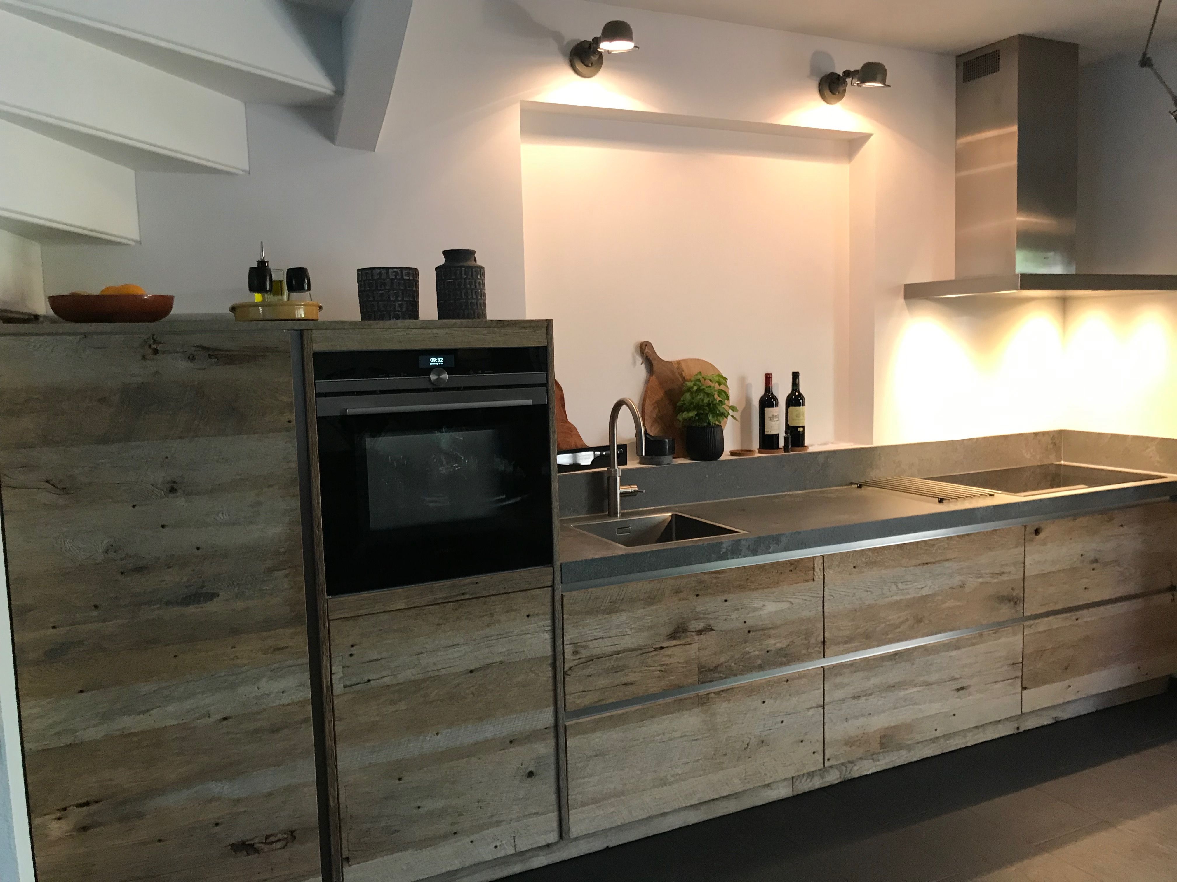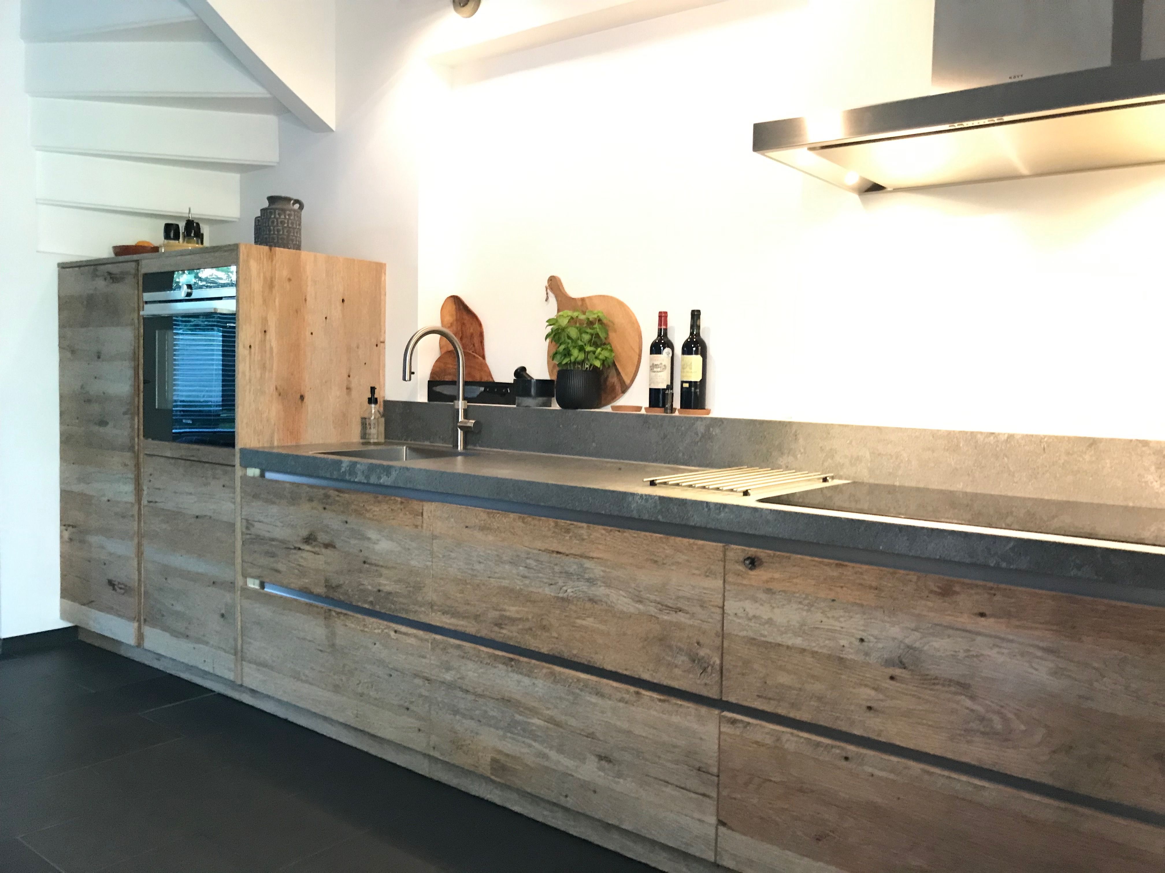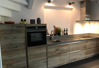 Nadat we diverse keukenstudio’s bezocht hebben en we nergens het goede gevoel kregen, zijn we gaan kijken op internet en zijn bij Barnwood uitgekomen en I-Kook die in hun keukens de Barnwood-fronten verwerken. We zijn zonder afspraak bij I-Kook gaan kijken. We werden niet meteen besprongen door een verkoper en hebben dat het front gevonden van Barnwood dat we wilden hebben. We dachten ”dit moet het worden”. We hebben een afspraak met Donne gemaakt. We wisten precies wat we wilden qua opstelling. Verder kwamen er nog aanvullende ideeën van Donne, o.a. het afvalscheidingssysteem. We voelden ons erg op ons gemak in jullie keukenstudio. Het is schitterend geworden, super zelf. We zijn 100% tevreden. We hebben het composieten werkblad zelf bij de leverancier van de werkbladen uit mogen zoeken. Dit hebben we gedaan in combinatie met het frontje van I-Kook dat we mee kregen. Dean, de Duitse monteur, heeft, omdat de dag erna een feestdag was, lang doorgewerkt zodat de keuken met composieten werkbladen in een dag geplaatst kon worden. Toen de keuken gemonteerd was hebben twee mensen van Robuust Maatwerk de frontjes opgehaald. Die zijn in hun werkplaats voorzien van echte Barnwood fronten en daarna weer bij ons teruggeplaatst. We hebben echt niets waar we ons aan gestoord hebben of iets waar jullie je in zouden kunnen verbeten. Misschien iets meer reclame maken voor deze prachtige fronten. Iedereen die bij ons op bezoek komt verbaast zich over onze keuken, zelfs degene die pas een nieuwe keuken hebben gekocht zeggen: als we dit eerder hadden gezien…………. Ook het onderhoud ervan is veel makkelijker dat een uni-kleur keuken. Voor jullie toekomstige klanten een tip: koop een koelkast met NUL-graden gedeelte. Groente en fruit kan er een week in liggen zonder dat de smaak beïnvloed wordt en zonder dat het product er anders gaat uitzien. Het blijft gewoon veel langer vers en we hoeven geen groente/fruit meer weg te gooien!!!