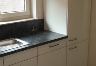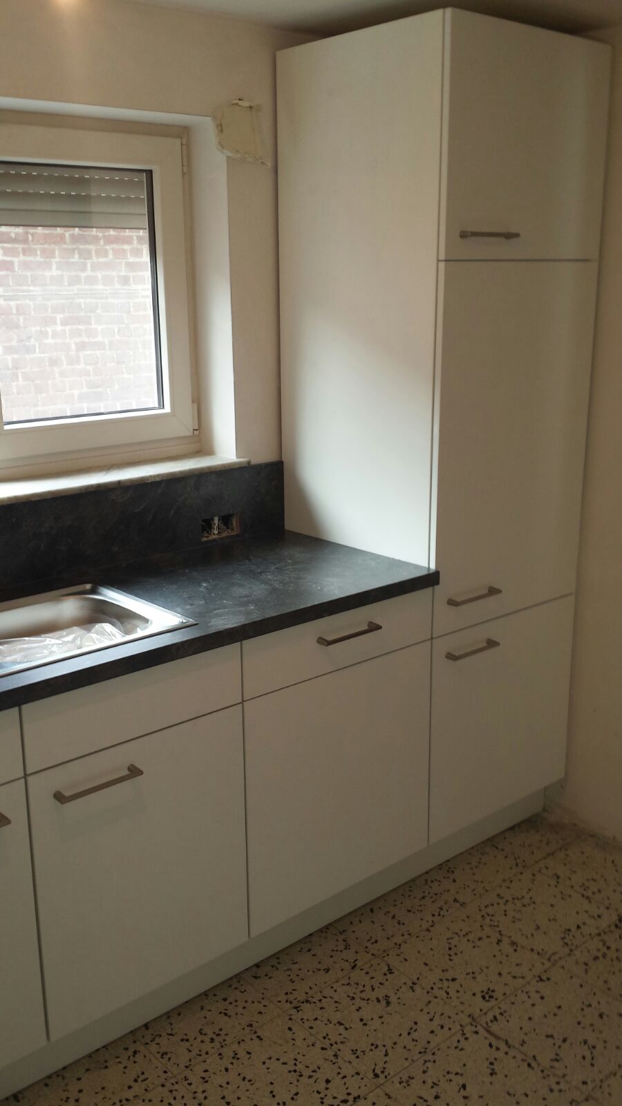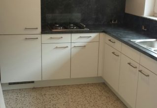 De keuken is zeer fraai geworden. We zijn er blij mee. We bestellen nog extra bekledingsmateriaal om de achterwand volledig af te timmeren.