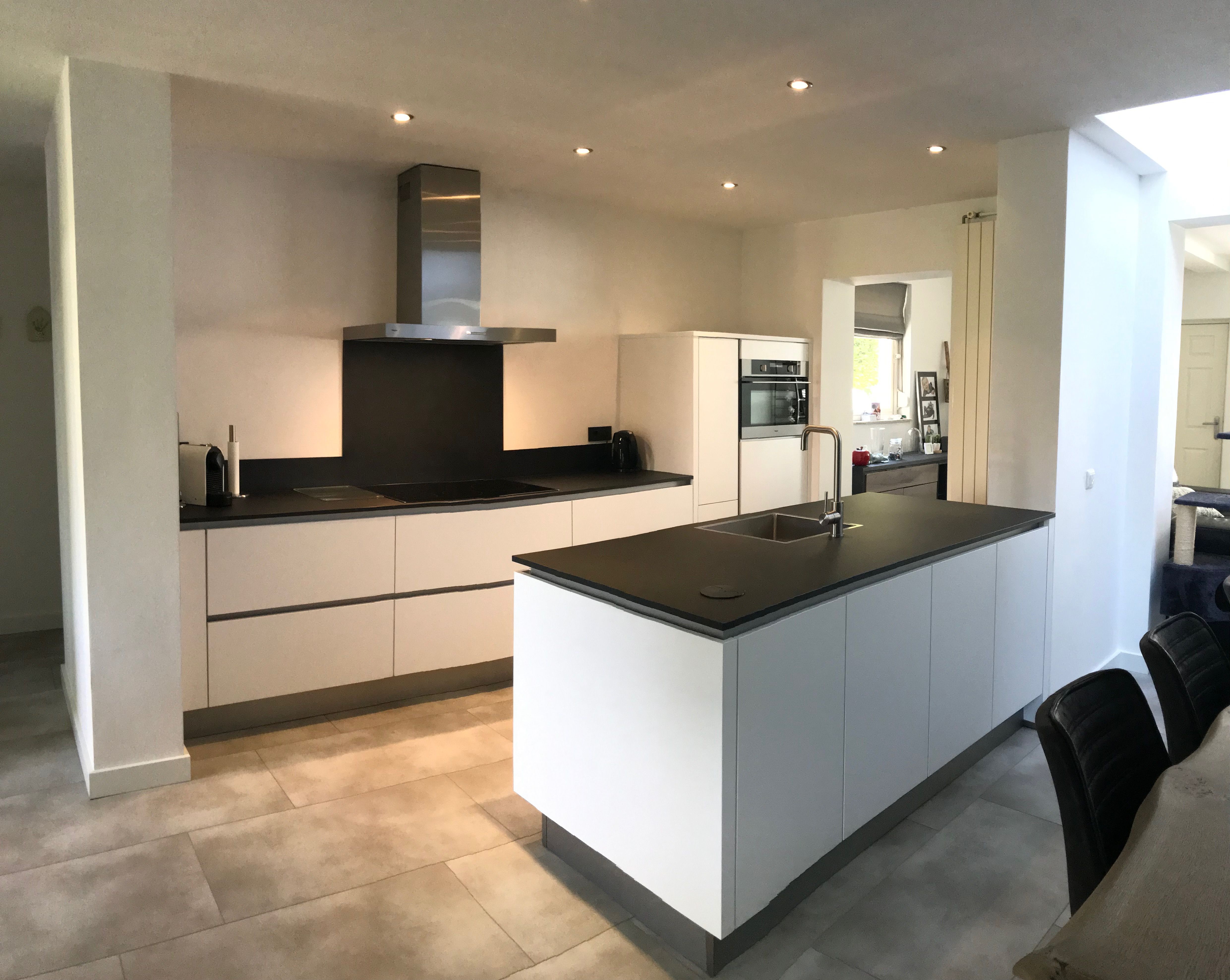 Als ik ga sporten kom ik altijd langs I-Kook Sittard. Bovendien ligt het bij de ingang van de personeelsparkeerplaats van mijn werkgever. We zijn de eerste keer bij jullie geweest en hebben meteen gekocht. Dit lag m.n. ook aan Glenn. Hij is met ons door de hele keukenstudio gelopen en heeft ons van alles laten zien en uitgelegd. We hebben uiteindelijk voor een 2 cm dik kunststof werkblad gekozen i.p.v. een composieten werkblad. Dit scheelde behoorlijk in prijs en daarvoor konden we weer andere aanpassingen laten uitvoeren aan de keuken. De tip van Paul (Rila Montage)om rechts geen passtuk te plaatsen, maar alleen om de twee hoge kasten wangen te plaatsen, zien we als zeer waardevol. Paul heeft ons zelfs geholpen, de tegels die onder het eiland komen, in te korten met zijn professionele snijwerktuig. Het is fijn dat we bij jullie eerst op ons gemak kunnen kijken, boeken mee krijgen om thuis op ons gemak te bestuderen om vervolgens in de keukenstudie duidelijkheid krijgen qua prijs, niets onderhandelen, een eerlijke prijs.