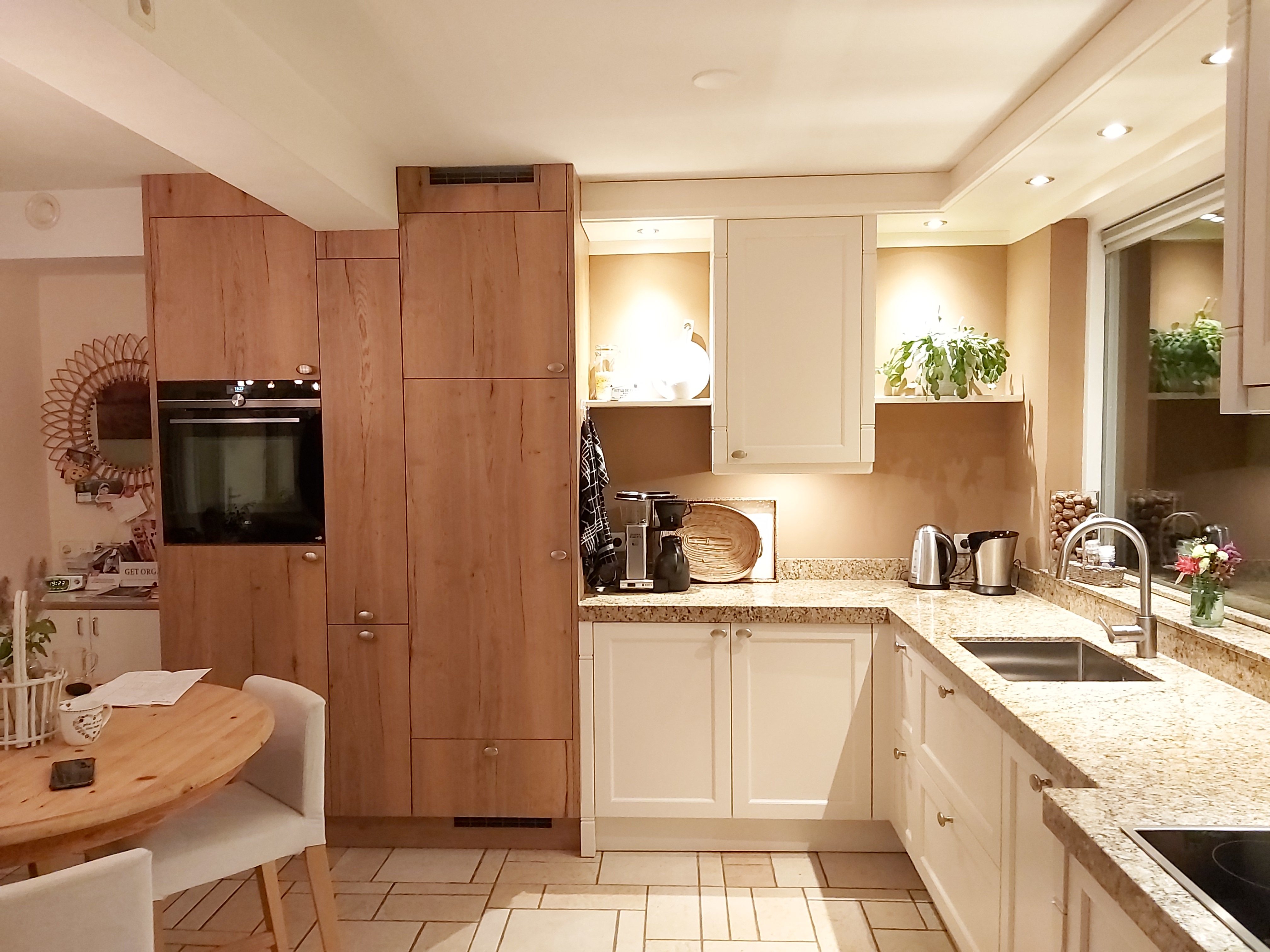 We zijn bij verschillende keukenzaken geweest en nergens vonden we het maatwerk dat we echt nodig hadden voor onze keuken. Bij I-KOOK Capelle aan den IJssel zijn we wel geslaagd. Na verschillende gesprekken zijn we tot het juiste ontwerp voor onze nieuwe keuken gekomen. Omdat we een balk onder het plafond hebben waar de keuken omheen gebouwd moest worden was het een complexe puzzel om het exact passend te krijgen. Alle details die we belangrijk vonden zijn uitvoerig besproken en alles is netjes en volgens afspraak geleverd en geplaatst. De plint boven de hoge kasten vonden we na montage niet zo mooi. Dit is nog aangepast waardoor we nu helemaal tevreden zijn!