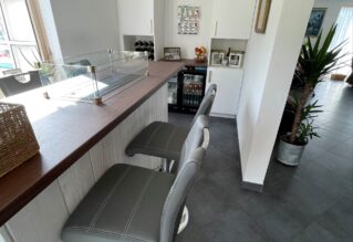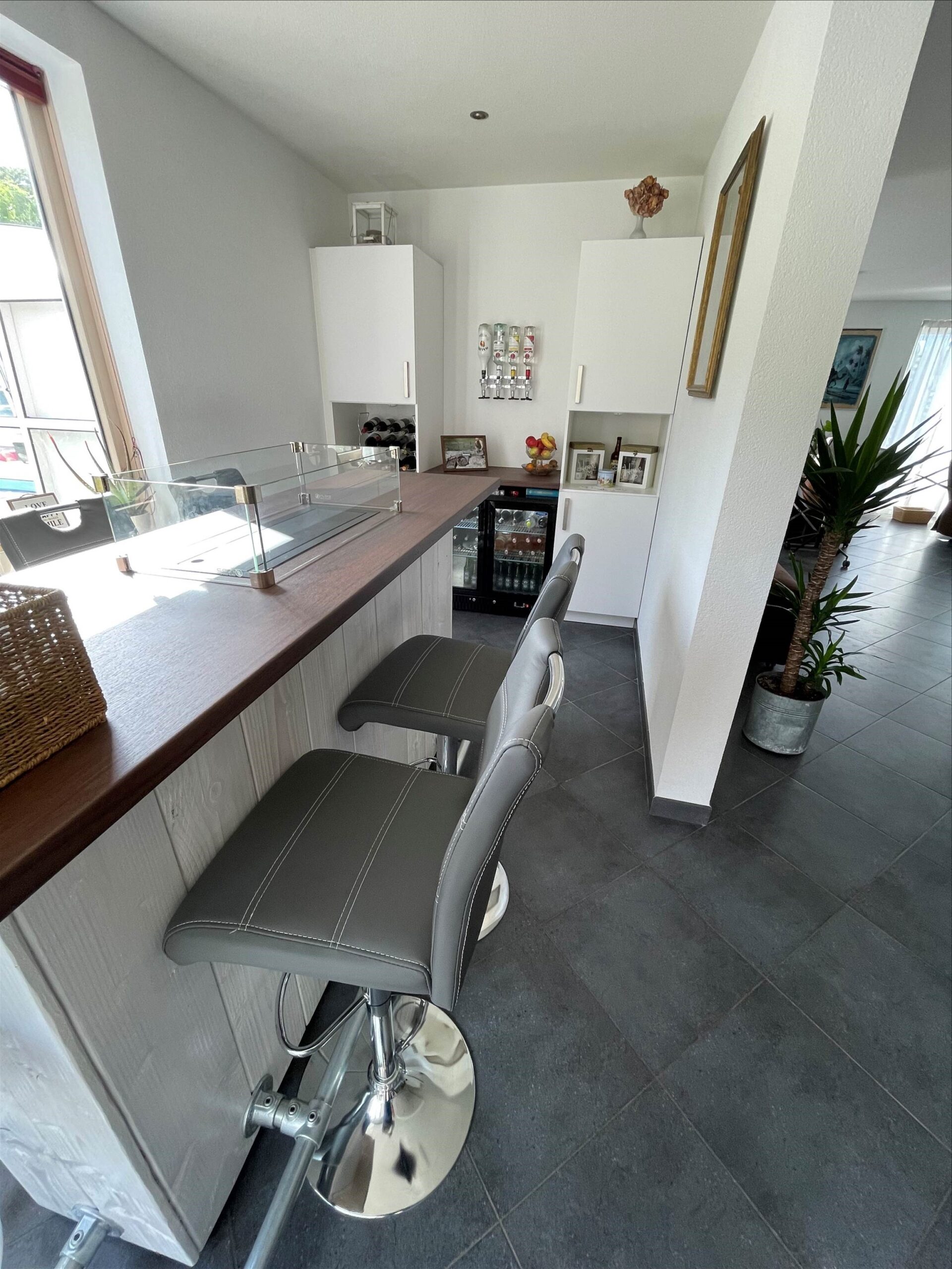 Met onderdelen van de keuken hebben we nog een extra bar gemaakt, deze past precies bij de rest van de keuken en het huis.