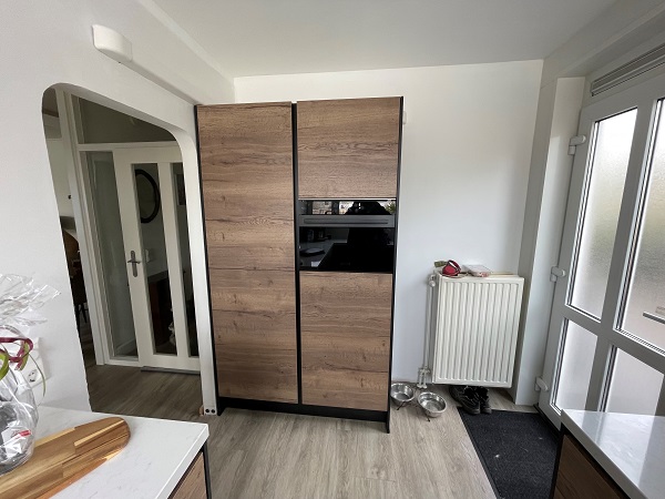 De keuken werd netjes geleverd en daarna gemonteerd door twee relaxte, vrolijke en meedenkende monteurs. Deze heren hebben vakkundig werk geleverd. De combi oven kwam pas op de dag van montage binnen, maar deze werd direct in de middag geleverd en gemonteerd. Na de montage kwam keukencoach Frans de keuken nog opleveren en controleren op eventuele gebreken.
