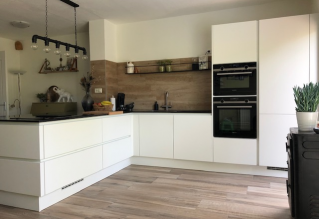 Melissa werkte destijds nog niet zo lang bij I-KOOK waardoor ze soms iets moest (na)vragen, maar dat was absoluut niet hinderlijk. Erg leuk vonden we dat ze – nadat de keuken was geplaatst – op bezoek kwam om het naar het eindresultaat te kijken.