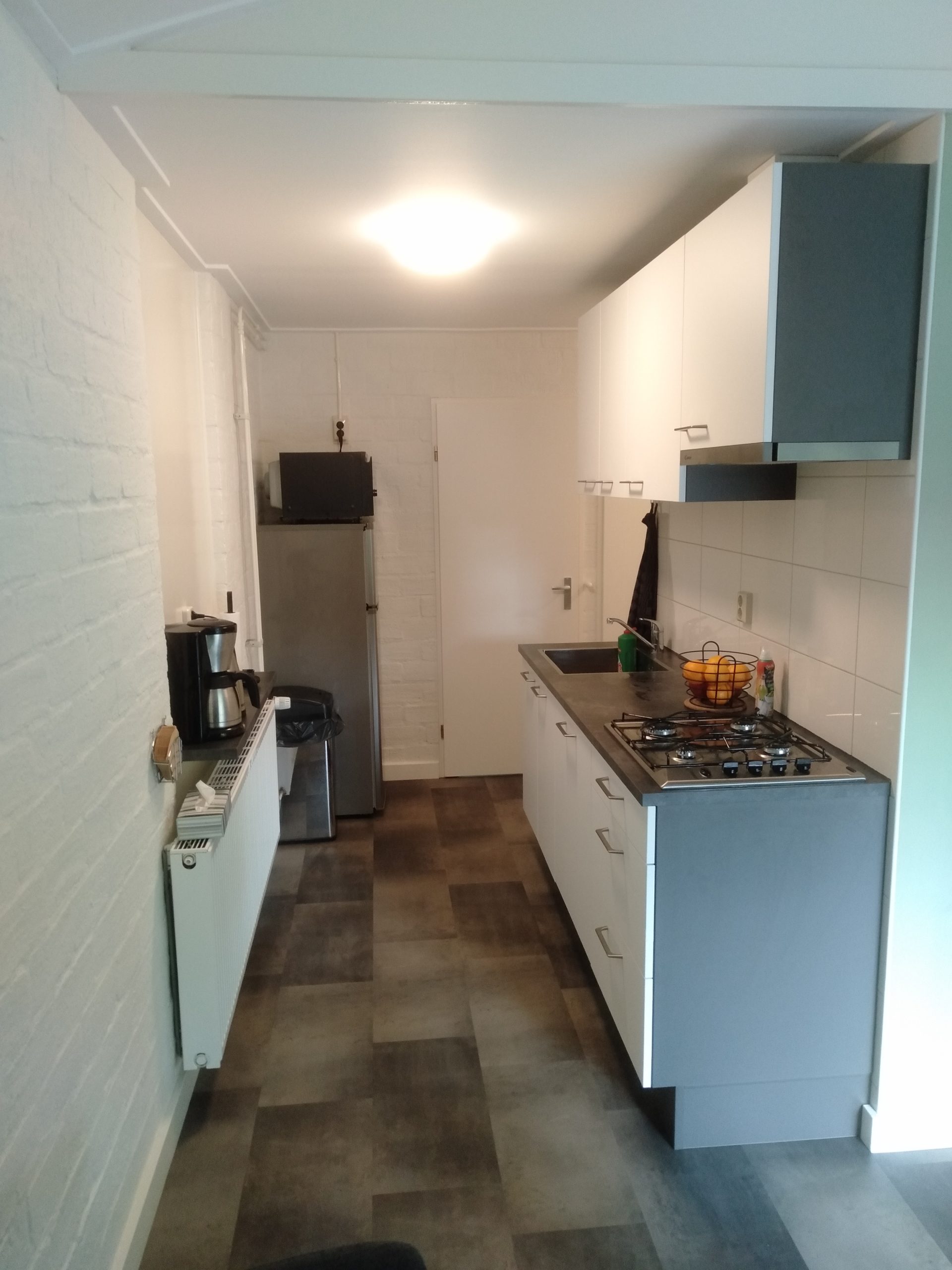 In ons vakantiehuisje hadden we maar een smalle ruimte voor de keuken, maar we wilden wel dat deze keuken van alle benodigde apparaten was voorzien.