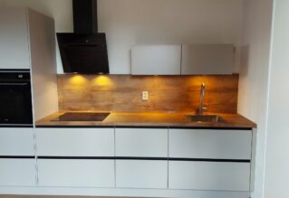 Rick onze ontwerper bood aan om met kleuren en de nodige andere dingen bij ons thuis te komen. Hier werden we het snel eens over de kleur en alle andere zaken. Kort, snel, duidelijk verhaal. 24 oktober werd hij geplaatst door keukenmontage bedrijf uit Anderen. Vakmensen superkeurig gewerkt.