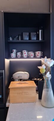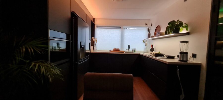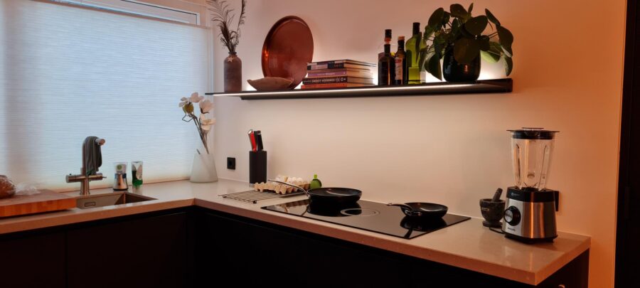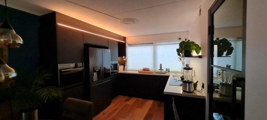 Dank voor het toesturen van de foto's! Het eindresultaat is werkelijk prachtig, dat hebben we samen goed voor elkaar. De inrichting en verlichting maken er een mooi geheel van. Ik wens jullie veel kookplezier toe en vele mooie momenten!