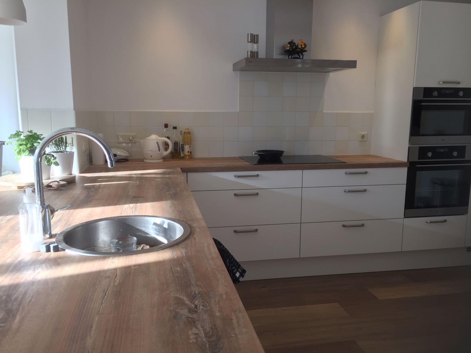 We zijn heel erg tevreden over het eindresultaat. De keuken heeft Rinaldo voor het stukadoren opgemeten, maar de keuken paste perfect. Maurice en Paul de monteurs werken heel erg efficiënt samen en waren op het einde van de middag al klaar met hun werk.