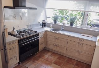 Onze keukencoach heeft een keuken ontworpen waarin hij al onze wensen wat betreft kasten en apparatuur heeft kunnen verwerken, met topapparaten van Siemens en een Smeg-fornuis. Het advies ging vlot en vakkundig. De spoelbak van composiet met afdruipgedeelte met eigen afvoer vinden we echt geweldig. We hebben dan ook direct besloten om de keuken te kopen.