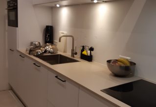 De montage en levering van de keuken zijn beiden perfect uitgevoerd. Onze monteur Ton heeft zeer vakkundig werk verricht.  Wij zijn heel blij met de extra hoge onderkasten en het verdiepte werkblad, hierdoor hebben wij meer werkruimte in onze keuken.