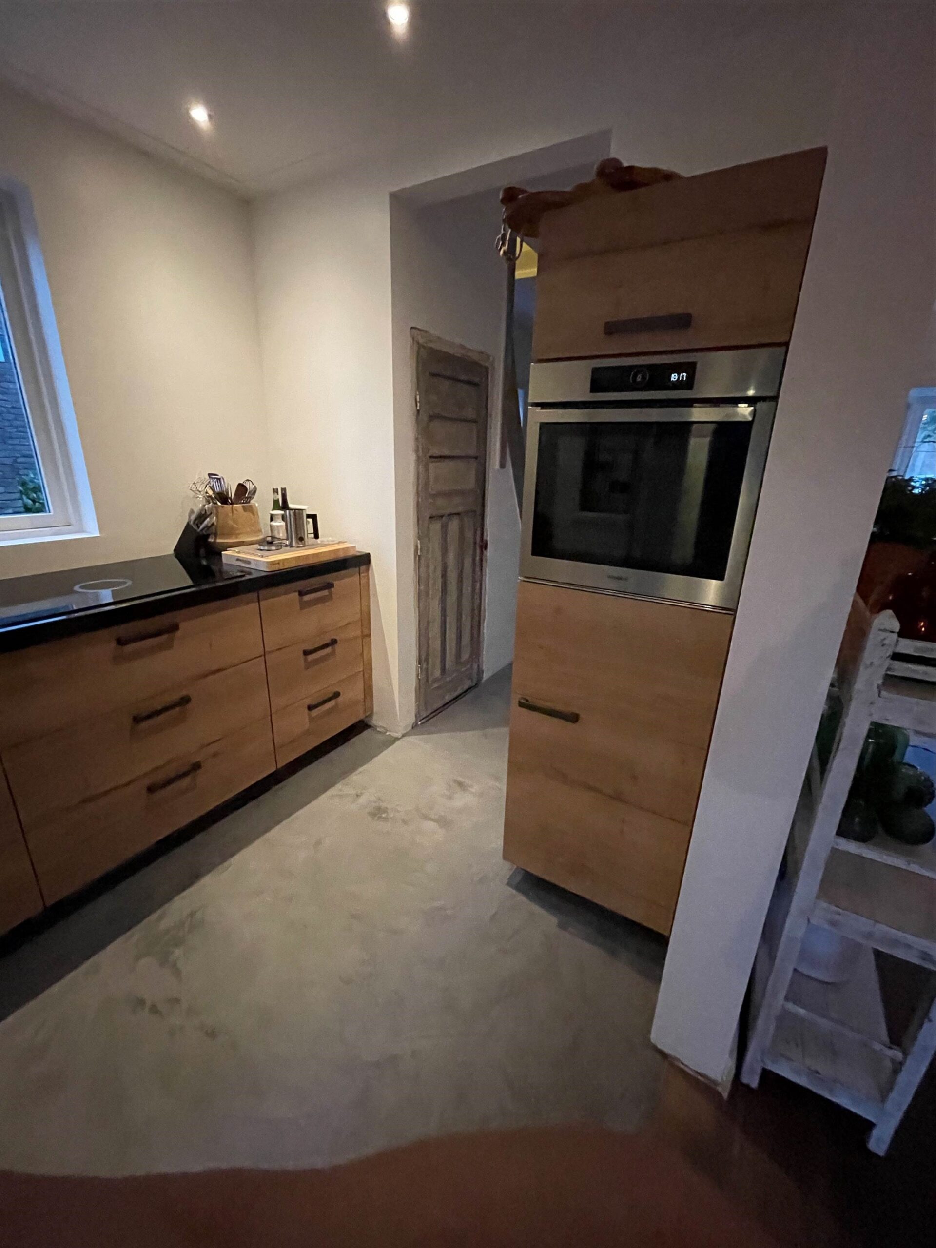 Frans doet erg veel werkzaamheden zelf, zo kwam hij ook de ruimte inmeten. Dit vonden wij erg fijn, want hierdoor konden we met al onze vragen rechtstreeks bij hem terecht. We konden hem altijd bereiken en hij dacht altijd in oplossingen.