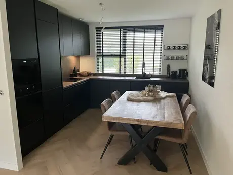Wat staat de keuken prachtig in jullie huis! De zwarte kleur die jullie hebben uitgekozen geeft een luxe uitstraling. Ik wens jullie veel kookplezier in deze prachtige keuken!